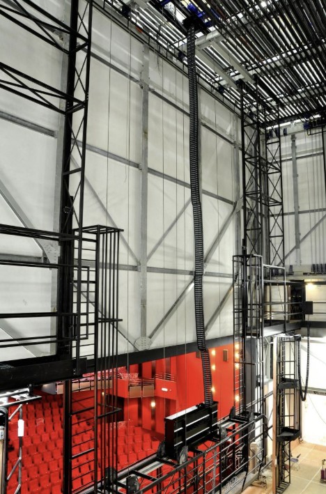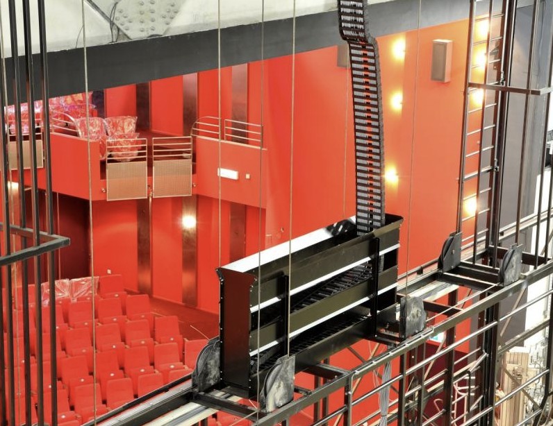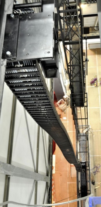 Locatie: Zwolle Enschede Almere Haarlem Amstelveen Sneek Assen e.a. Periode: 2006 – 2013 Type installatie en rupssoort: ZIG-ZAG rups in Korf op Podium portaal in diverse theaters Omschrijving: Op de grote brandscheidingswand die in theaters de zaal van het podium afsluit wordt veelal een korfrups aangebracht. Voor alle DMX besturingssignalen, maar ook krachtstroom en anders verlichtingstoepassingen op het podium. De rups reikt dan vanaf het portaal naar de rollenzolder die op 26 á 30 meter hoogte is. Chainbuilders is gespecialiseerd in de engineering en uitwerking van de montage mogelijkheden van dergelijke systemen alswel in het daadwerkelijk plaatsen ( riggen ) van deze installaties
